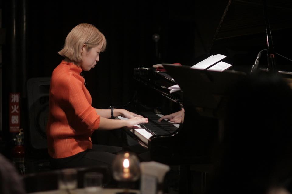 ▶1曲目は佐藤さんのオリジナル曲♪Red Brown は二年前まで佐藤さんが実家で飼っていた赤茶色の猫を想って書いたワルツ曲。佐藤さんは猫カフェにはまっていて、月に1~3回程度通っているそうです。そこで推し猫のお誕生日会があり、その猫を抱っこしてチェキを撮れる権利を懸けたじゃんけん大会で、見事優勝した…という話で観客をほっこりさせ笑わせます。