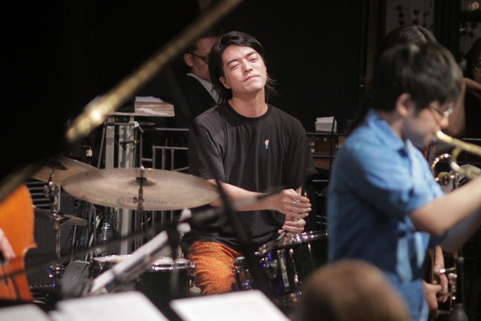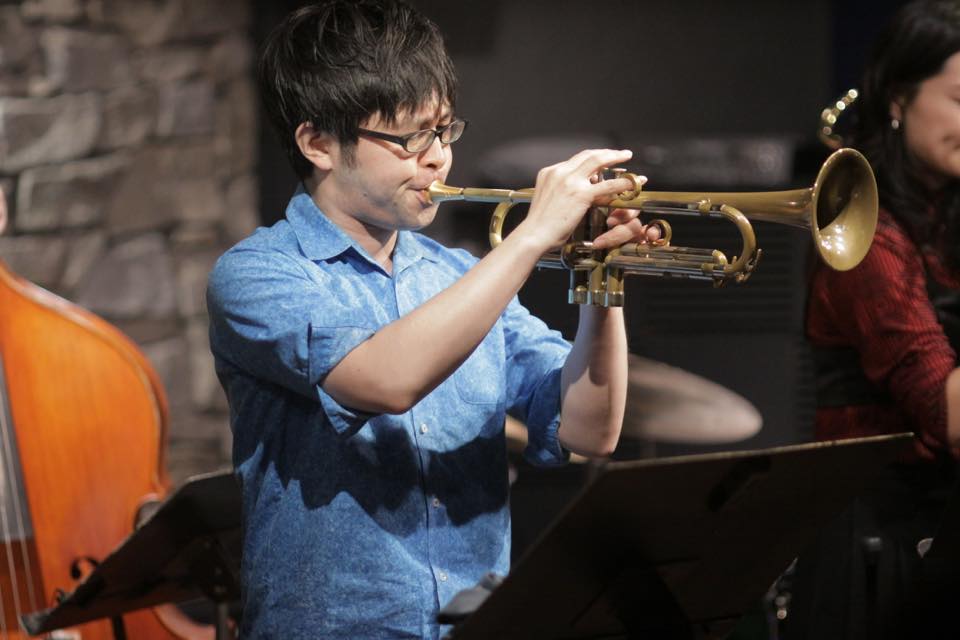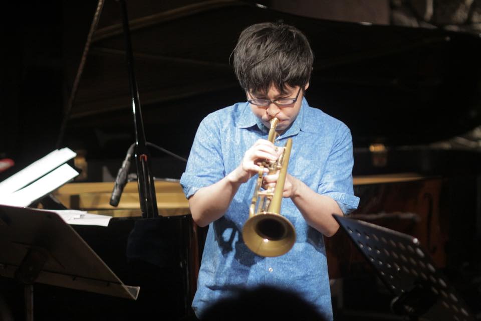 ▶♪Ceora では、駒野さんが一時退席され石川さんのトランペットにフィーチャーした演奏になりました。石川さんは前後に大きく動きながら、躍動感豊かに強い一音を連ねていきます。悠々と吹き、高らかな音色で華やかに演奏を進めます。北沢さんが美しいシンバルのサウンドで寄り添い、綺麗な空気感を創ります。
