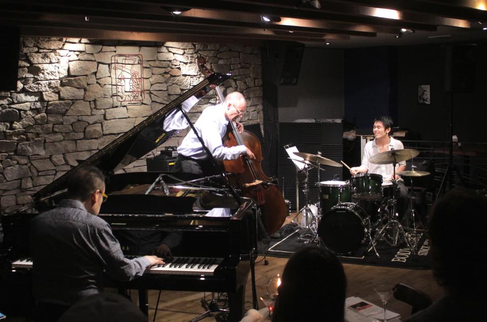 10/7(火)《椎名豊リーダートリオ》昨夜のメンバー 椎名豊(pf) パット・グリン(b) 大儀見海(ds) さん