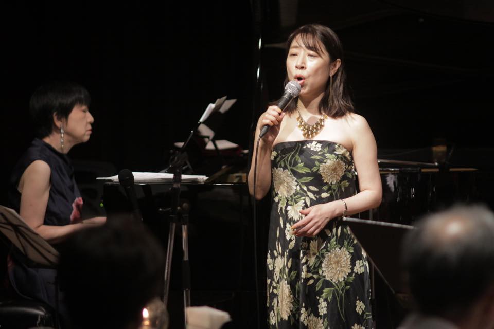 ▶千波さんはよく勉強していらして、さすがヴォイストレーナーもなさっていて声もよく出ていて英語の発音も綺麗です。歌われた曲も幅広く、ジャズ好きがご存じの曲がほとんどで、ファンの方もお客さまも私も、大変贅沢なステージを楽しませていただきました。素敵なミュージシャンたちに、乾杯!!