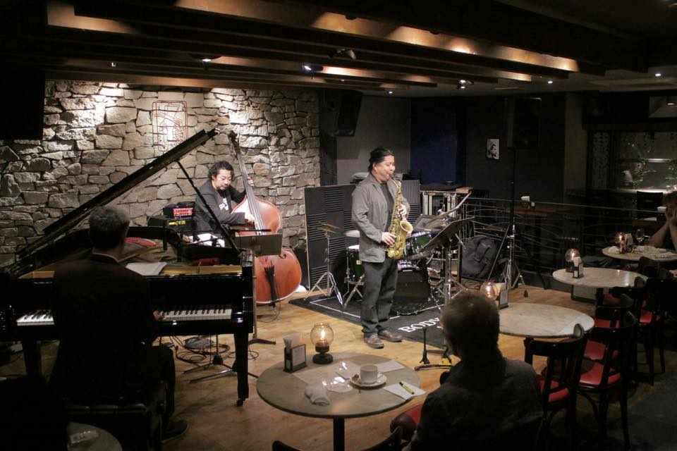 ▶2nd.set…テナー奏者ジョー・ヘンダーソン東洋的な響きの曲♪Jin-riki-sha (人力車)。ベーシスト ロン・カーターの♪81…マイルス・デイヴィスのアルバム 「E.S.P.」 の収録曲。秋の定番曲ヴァーノン・デュークのバラード♪Autumn in New York。ベーシスト オスカー・ペティフォードの躍動感ある曲♪Laverne Walk。B.ストレイホーン♪U.M.M.G. (Upper Manhattan Medical Group)…ストレイホーンが通っていたNYの診療所名です。アンコール曲はT.モンクの代表曲♪Blue Monk でした。
