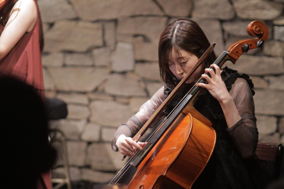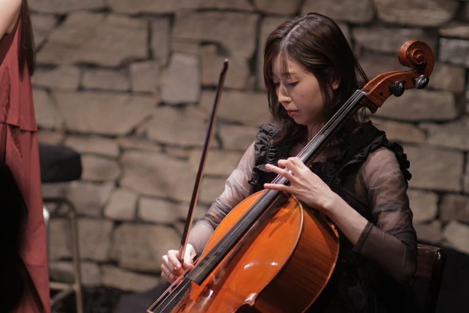 ▶ステージに登場し池本さんがご挨拶とメンバー紹介。村岡さんのチェロと武本さんのピアノが勢いよく演奏を始め、すぐに池本さんのトロンボーン亀井さんのヴァイオリンが続きます。亀井さんは華やかな音色で弾き、村岡さんの重厚なチェロの音色が重なります。