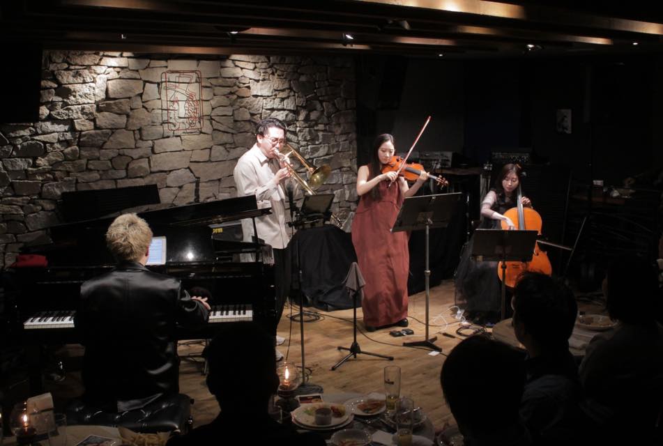▶昨夜は《ZARUKAMEmoto》という二弦編成のユニットで、メンバーはトロンボーン池本茂貴さんピアノ武本さんに、バイオリンとチェロの二弦の豪華なサウンドを楽しませていただきました。弦楽器が入るとサウンドがゴージャスになりますね。詳しいレポートは倉田さんにお願いしましたのでご覧くださいませ。