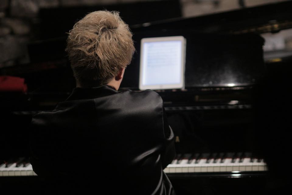 ▶チェロとヴァイオリンが交互に前に出て、武本さんの力強いピアノと共にドラマティックなアンサンブルになります。亀井さんがダイナミックな音色でヴァイオリンソロを披露され、武本さんが繊細な音色のピアノソロで続き力感を増して大きく弾き進みます。