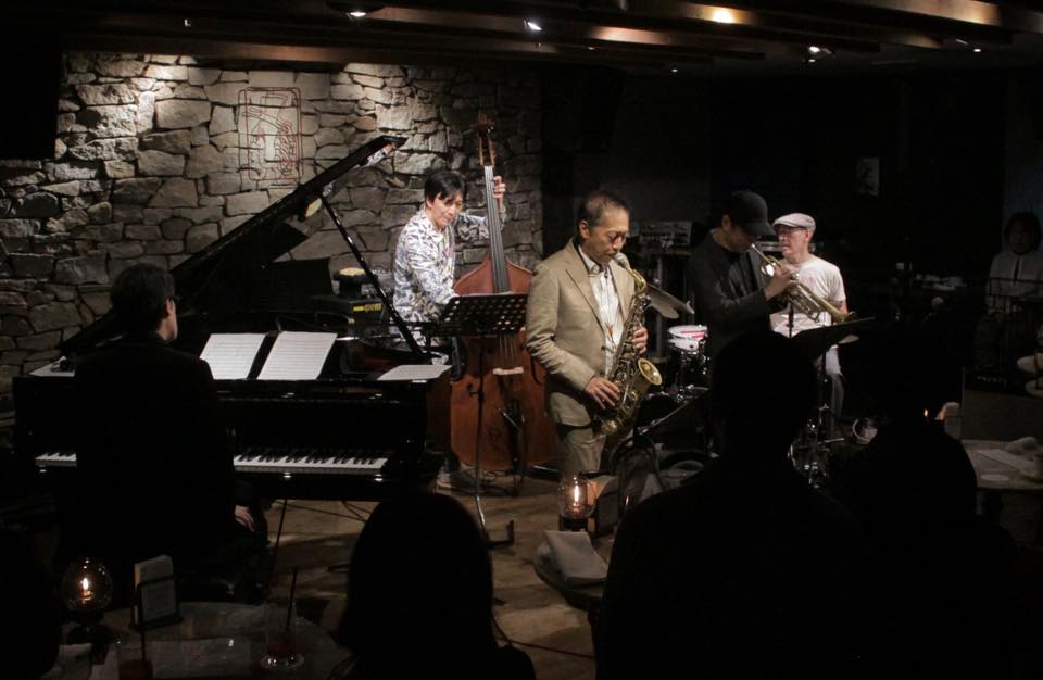 ▶ここ数ヶ月は日曜は午後のライブを組んでいます。昨日は《村田憲一郎リーダークィンテット》メンバーは 現役の歯医者さんで大ベテランドラマー 村田憲一郎 さんと 松島啓之(tp) 近藤和彦(as) 吉田桂一(pf) 飯田雅春(b) さんです。秋晴れの良いお天気で村田さんがお知り合いに声を掛けてくださり、店内は丁度良い感じに埋まりミュージシャンも張り切って演奏されました。