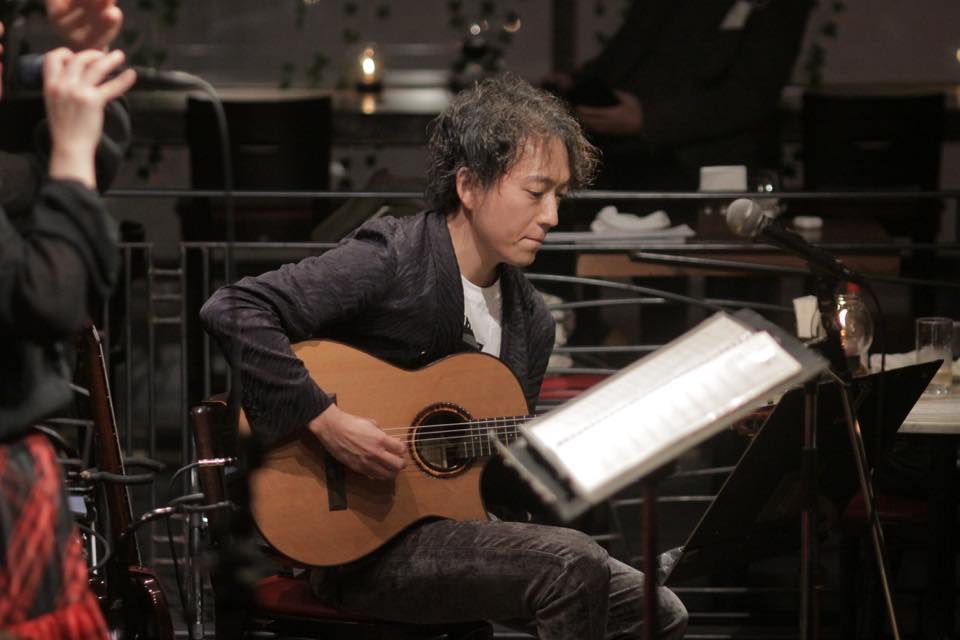 ▶お店のそばのNHK脇のイチョウ並木もすっかり色づき、ほとんど葉が落ちた樹もちらほらある師走第1週の昨夜は、AYUKO(vo)さんのヴォーカルステージ。バックは 渡辺翔太(pf) 古木佳祐(b) 松原慶史(g) 塚田陽太(ds) さんのギタークァルテット。低音から高音まで綺麗に前に出る歌声で、世界各地の民謡から日本の唱歌まで、幅広いレパートリーで歌われました。クリスマスソングもジャズクラビでよく聴く曲ではなく、珍しい曲を何曲か歌われました。共演メンバーも彼女のヴォーカルを大切にして、良いサポートをされていました。