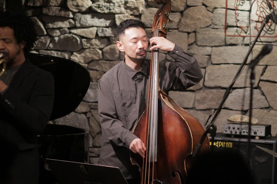 ▶京子ママに捧げて歌う♪Body and Soul は圧巻の演奏になりました。トニーさんがピアノで美しいメロディーを弾き、TAKUさんとデュオで歌いパワフルな歌声を響かせます。メロディアスなピアノソロに、ラファエルさんがブラシを回す密やかな音、粟谷さんが弾く温かいベースの音色が並走します。粟谷さんのベースソロでは、一音をくっきりと華やかな残響で弾いていきます。