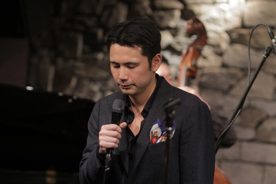▶TAKUさんは、力強く幹の太い歌声で、観客の耳に心地よく豊かな声量です。魅力的なスタンダード曲の数々は、どの曲も聴きごたえがあります。その中で、バラードは特に情感豊かな表現で印象が強く残りました。♪Misty では、トニーさんのゆったりとした粋なピアノから始まりTAKUさんがスタンドマイクに向かい、目を閉じてしっとりと歌っていきます。ラファエルさんがブラシを回す音、粟谷さんがポツリと弾くベースの音が寄り添い、TAKUさんはゆうゆうとスケール大きく歌っていきます。