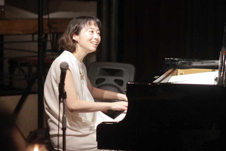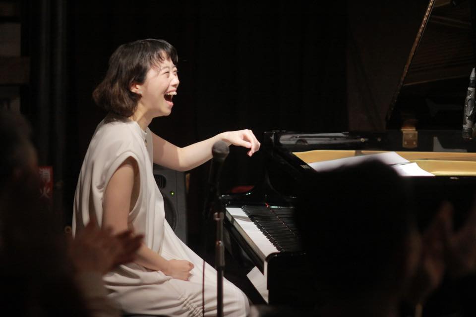 ▶利光さんと須田さんがそれぞれに明るく伸びやかな歌声を響かせ、お互いの歌声の残響に歌声を重ね、曲によっては掛け合いで歌い美しいコーラスで観客を魅了します。鈴木さんはピアノで歌いコーラスに参加しているような演奏でした。ピアノソロになると、独特の抑揚で強い情感を描きます。