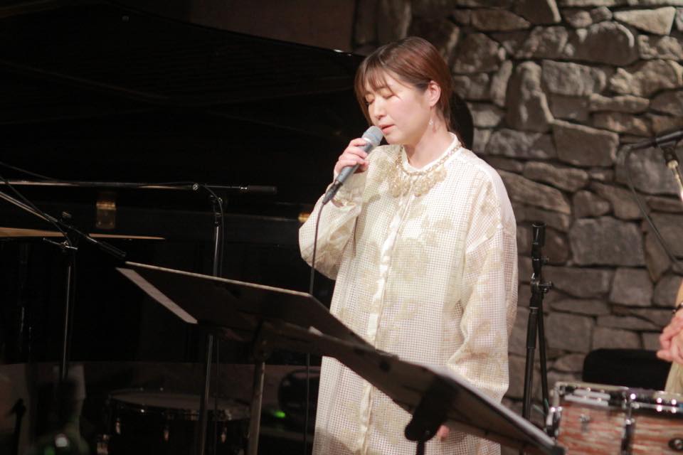 ▶須田さんがソロで歌った♪A New Body And Soul は、B&S南青山時代に出演したことがあり、今回は渋谷に移った新店に初登場ということで、この日のために用意されたとのことでした。須田さんは高く伸びやかな声で、観客一人ひとりを見ながら語り掛けるように歌っていきます。豊かな声量、歌唱の技術が際立つ一曲になりました。