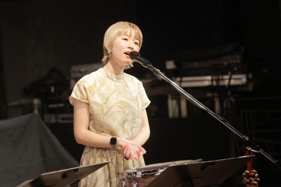 ▶利光さんがご挨拶とメンバー紹介。「ray」 では、声が合う須田さんと面白いことをしたい、声が重なることを楽しみたいと話します。♪Waltz Newでは、それぞれのスキャットを重ねて演奏しその響きの心地良さに、利光さんと須田さんが顔を見合わせて笑顔を交わします。この曲では利光さんがスネアでのソロ演奏も披露されました。