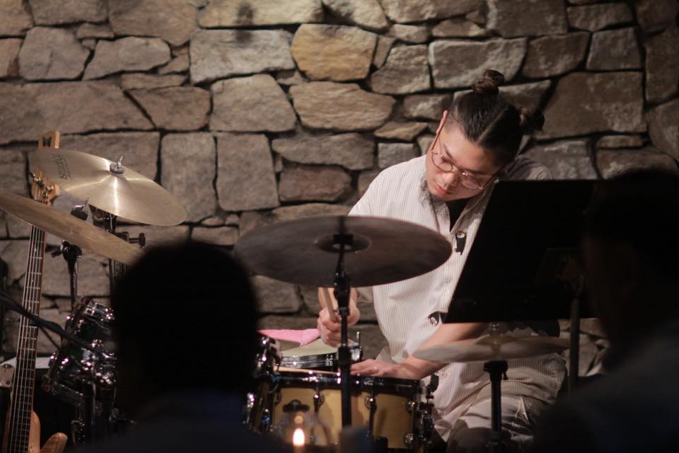 ▶武本さんがゆったりとピアノを弾き始めます。小田桐さんのブラシを回す音が優しく重層的に響きます。ピアノソロとなり、スキップするように軽やかに演奏が進みます。佐藤さんのエレベの温かい音色、小田桐さんのリズミカルなブラシが寄り添います。綺麗なフレーズを弾き速度を上げて、力感豊かに弾いていきます。並走するドラムスの心地良いサウンドに武本さんが笑顔になり、さらに勢いを増して弾き進みます。