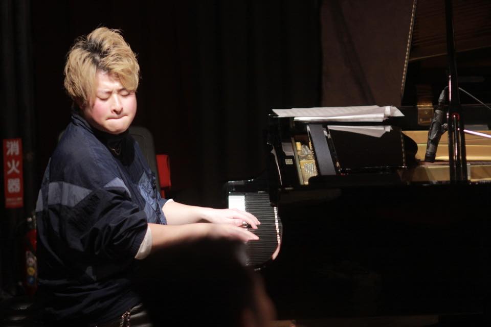▶2nd.セットでは、佐藤さんの人気曲♪Red Brown を演奏されました。この曲は、佐藤さんがご実家で飼っていた赤茶色の猫を想って書いた曲とのことでした。猫好きの佐藤さんは、猫カフェに行くのがお好きで空いているときに行き、転寝をしたら周りに七匹の猫が添い寝をしていて嬉しかった、と話し観客を笑わせ、会場をほっこりとした雰囲気にします。