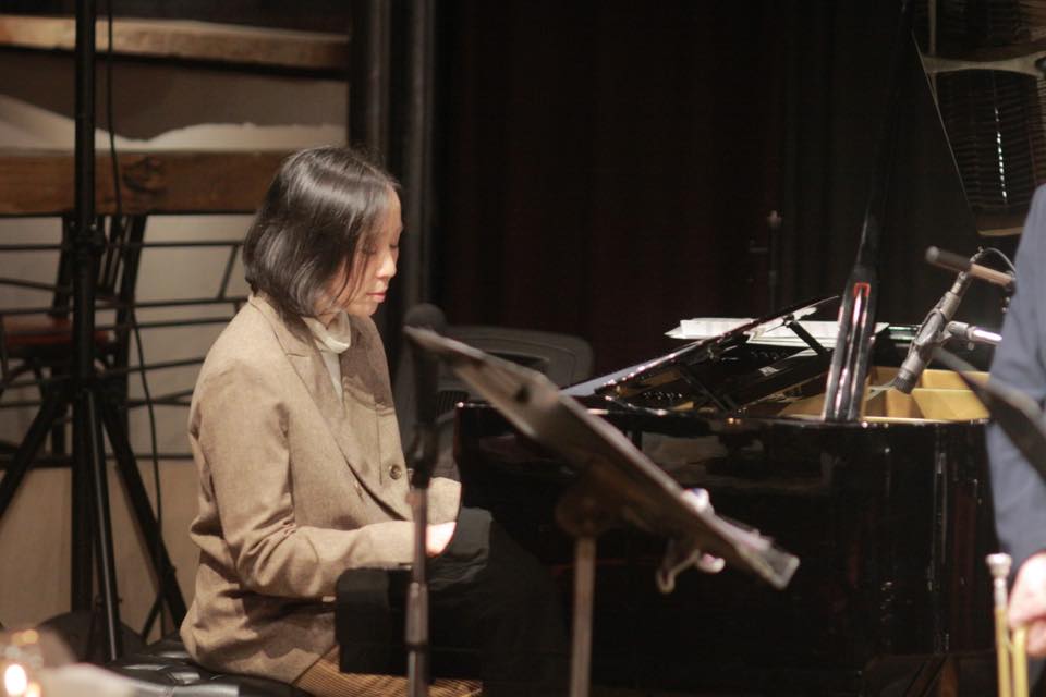 ▶《松島&駒野 双頭リーダークィンテット》はフロント二人 松島啓之(tp) 駒野逸美(tb) さんがリーダーで、今回はドラマーが代わって 野本晴美(pf) 三嶋大輝(b) 塚田陽太(ds) さんのバックトリオ。