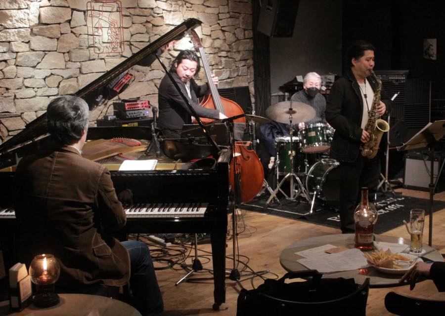 ▶選曲は私の青春時代を思い起こすようなジャズ黄金期の曲がスタンダード曲が多く、即興性が活きる演奏者の実力が試される、ドラマー寛さんらしい選曲ステージングでした。メンバーも水を得た魚のように楽しんで演奏。寒い日でお客さまは多くなかったですが、私も集中して大いに楽しみました。次回忍さんのアルトが聴けるのは、4/18(土)に仮押さえが入っています。河原畑拓巳さんの次回は3/23(月)です。