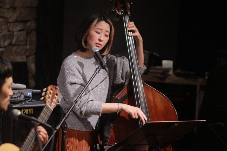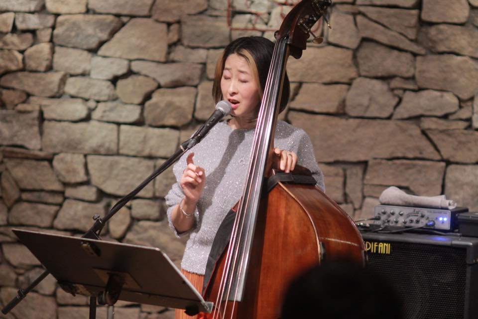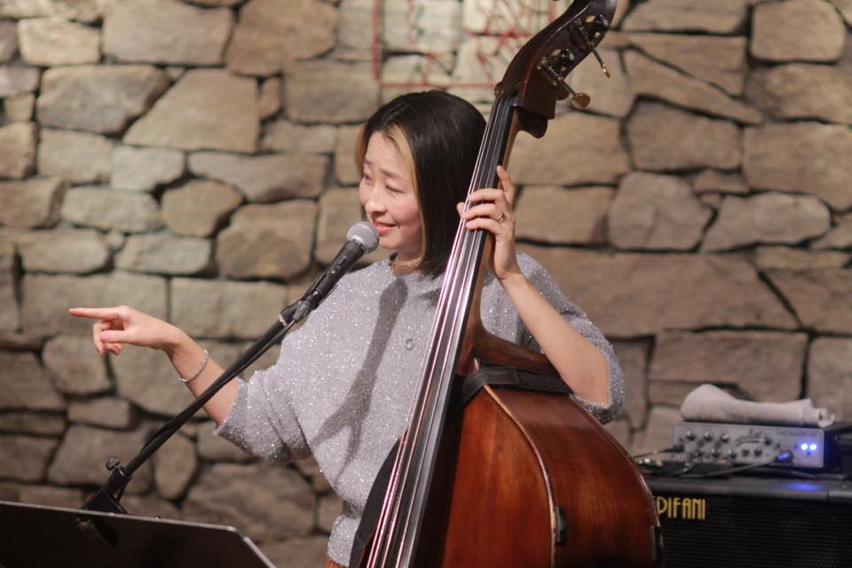 ▶バレンタインの季節で、愛に関する曲を沢山演奏していました、ジャズの曲は愛の曲が沢山ありますね。客席には男性客が多く、カナダからのいらしたお客さまがいて、NYが長いバイリンガルの久里子さんと話されいました。伺うとベーシストとのことでした。