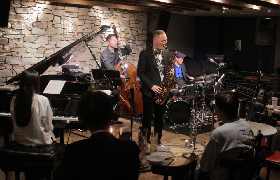 ▶桜もそろそろ…そんな週末金曜の夜は、浜崎さんと茜さんの完成度の高いクァルテットステージ。メンバーはいつもの 浜崎航(ts,ss,fl) 松本茜(pf) さんの名コンビに 大塚義将(b) 広瀬潤次(ds) さんのリズムセクション。浜さんはいつものように楽器を曲によって持ち替え、どの楽器もよく鳴らします。彼は海での潜りが趣味で、きっと肺活量も凄いのでしょうね。