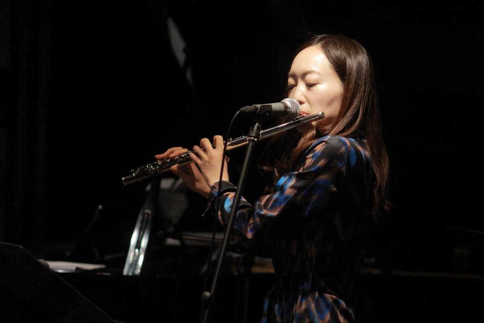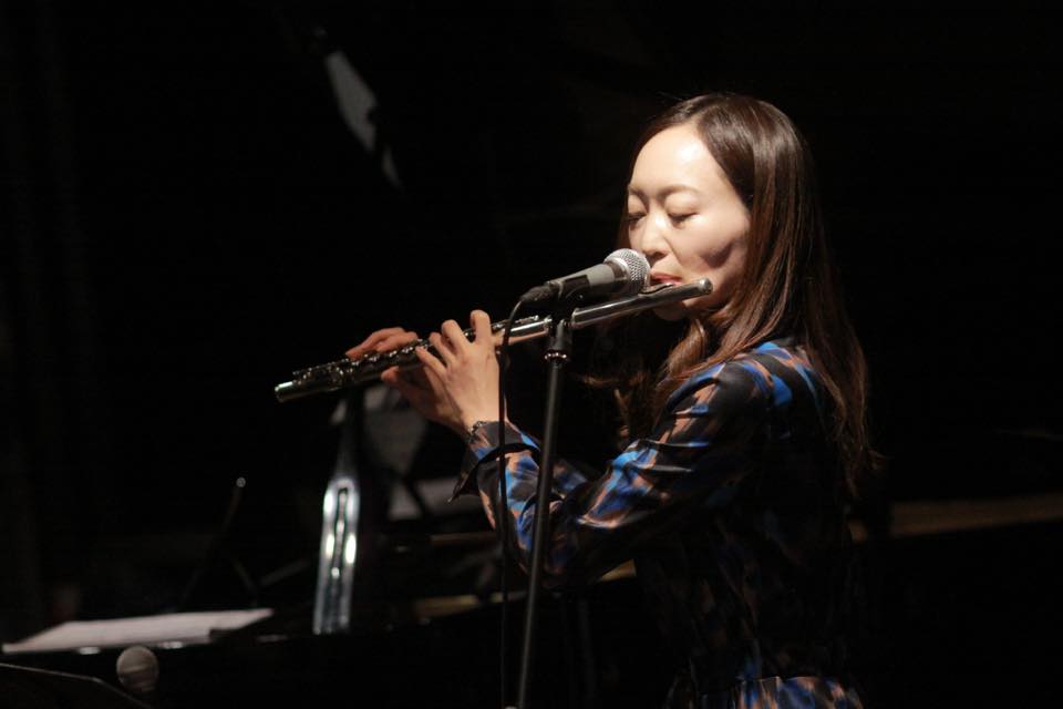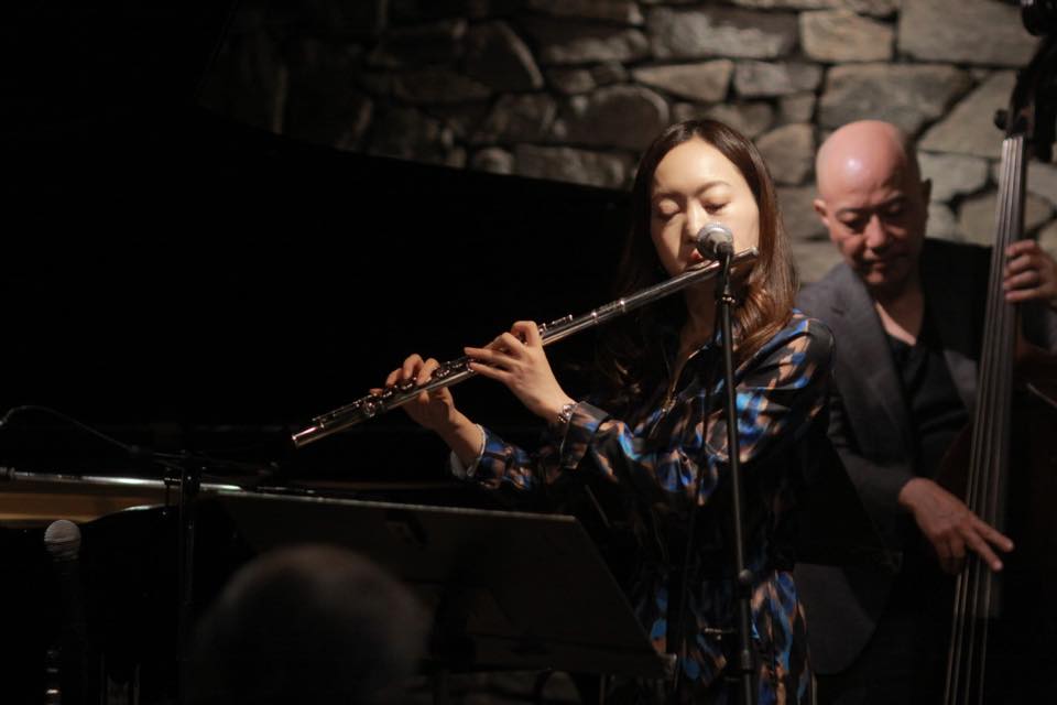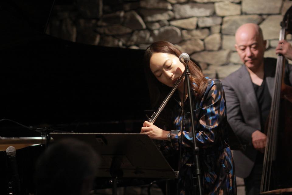 ▶酒井さんはいつも綺麗でセンスがよくて、フルートを吹く姿も絵になります。自身が信頼するしっかりしたリズム隊を得て、酒井さんは本領発揮。演奏曲もバラエティーに冨んでいて、空気/光/春/平和…フルートならではの世界観を表現するような演奏曲で、素晴らしい説得力あるステージを繰り広げられました。日曜の昼下がりで、お客さまは男性が多く皆さん熱心にお聴きになっておられました。お帰りには皆さんのお顔が、少し明るくなっていたように感じました。