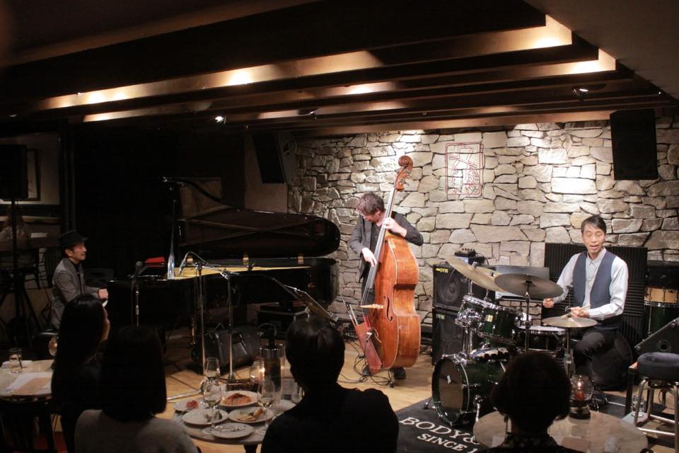 ▶昨夜は当店初めての試み、2バンドのライブでした。最初のセットは福田さんのトリオでメンバーはいつもの 福田重男(pf) 金森もとい(b) 奥平真吾(ds) さん。いつものようによくスウィングする、熱の入った演奏でした。
