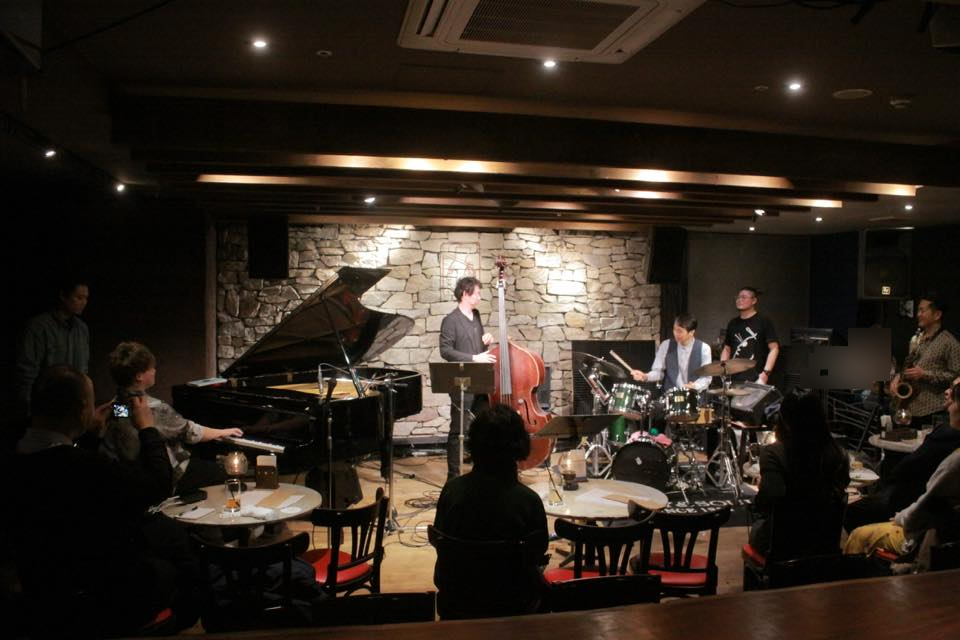 ▶各セット、ミュージシャンはお互いのステージを真剣に聴いておられました。最後のアンコール曲では、それぞれのメンバーが自分の担当楽器を入れ替わって 「Take the Coltrane」 を演奏。リハなしで即興で演奏されたのですが、さすが一流のプロたちです。もっとセッションしたかったのですが、時間切れになり残念でした。何しろ当方も演奏家も初めての試みで段取りが上手く行きませんでしたが、スリルとスピード感のある素晴らしいライブになりました。ミュージシャンに感謝いたします。