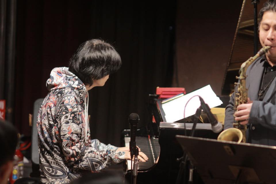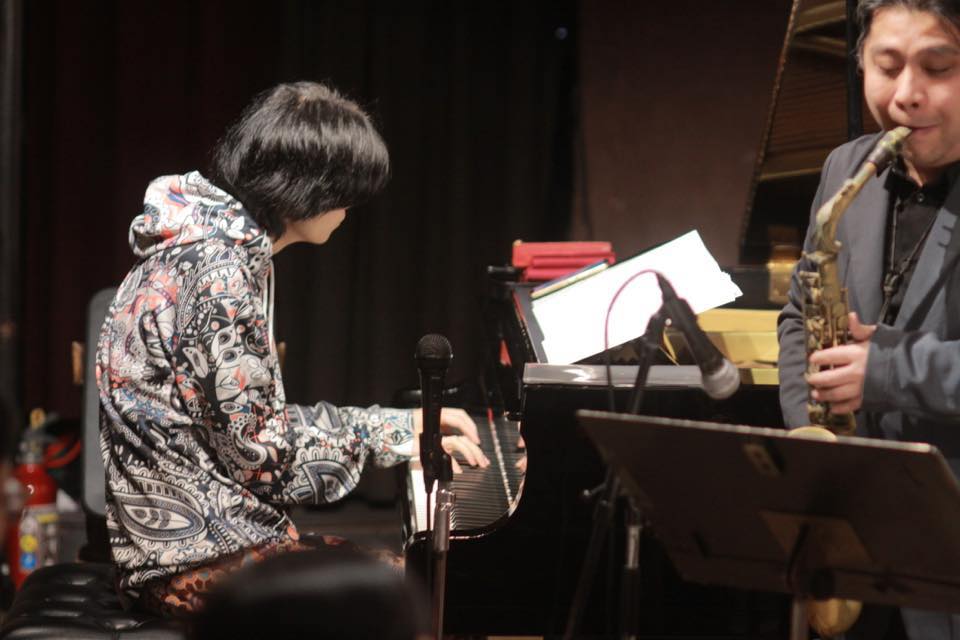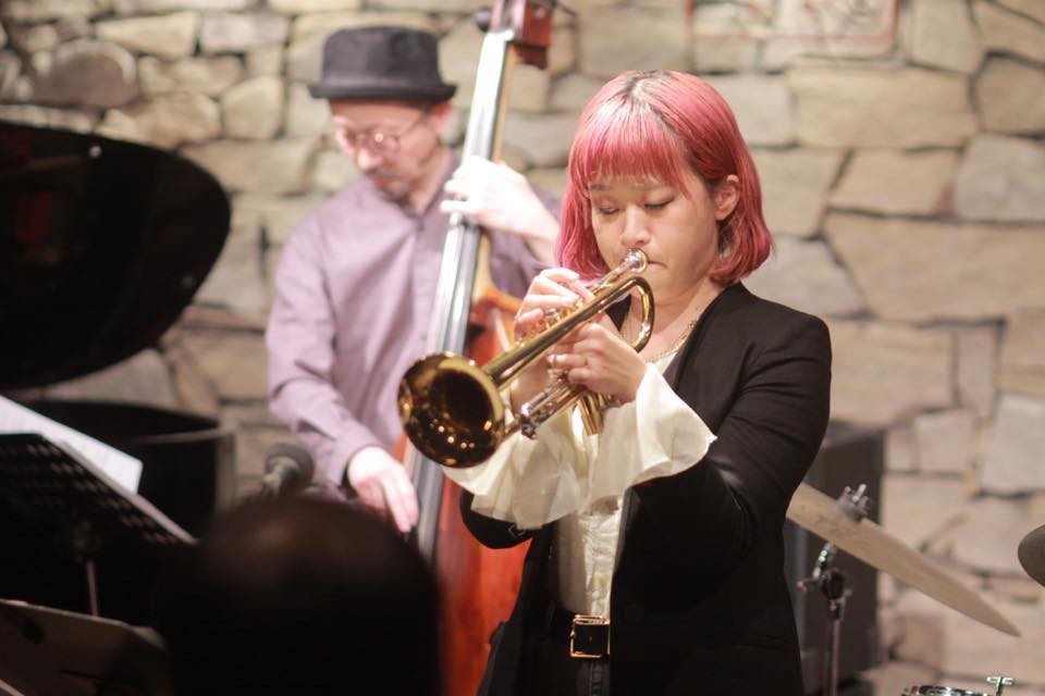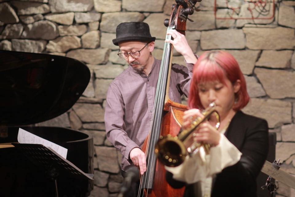 ▶そんなフロント陣を、はっきりした空さんのピアノ、と吉田さん横山さんのしっかりして信頼厚いリズム隊が支えます。皆さん当店にはよく出演されている面々です。昨夜はシカゴから来られたお客さまがいらしていて、特にひかりさんをとても褒めておられましたよ。演奏曲はスタンダード曲中のスタンダード曲ばかりで、私もお客さまも、楽しませてもらいました。