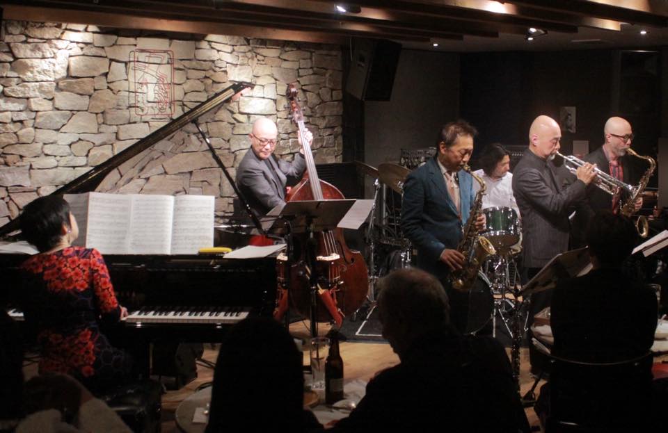 ▶いつもより5日も早く、ご近所の桜はまだ蕾で気づきませんでしたが、一昨夜 都内で桜の開花宣言があったようですね。そんな今年の連休中日の土曜の夜は、いつものメンバー 守屋純子(pf) 岡崎好朗(tp) 近藤和彦(as) 岡崎正典(ts) 安ヵ川大樹(b) 加納樹麻(ds) さんの《守屋純子セクステット》守屋さんはいつも万全の準備され6人分の譜面を準備してリハーサルもきちんとなさって本番に臨まれます。