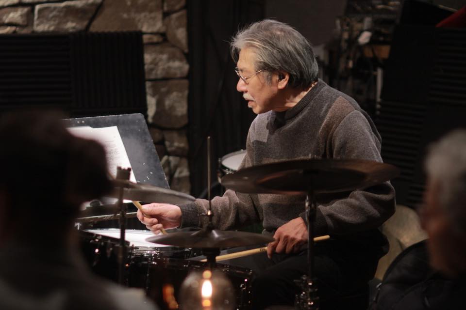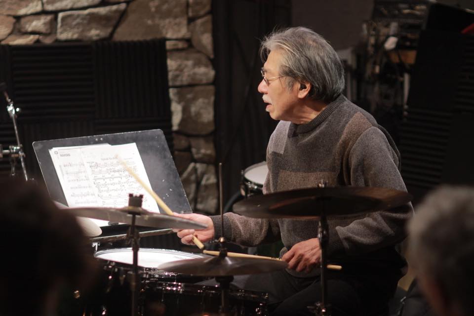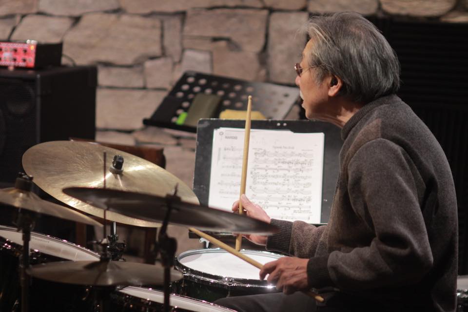 ▶昨夜はかつて フュージョン バンド 「ネイティブサン」 で一斉を風靡した大ベテランドラマー寛さんの《村上寛クァルテット》村上寛(ds) 西尾健一(tp) 楠直孝(pf) 伊藤勇司(b) 。昔のジャズメンらしくシャイで控え目なので、MCトークは楠さんに任せてもっぱらドラム演奏に専念。でも選曲は寛さんで、モダンジャズ黄金時代に私の若い頃よく聴いた曲ばかり。マイルス・クィンテット時代のウェイン・ショーターの曲を中心に演奏されました。