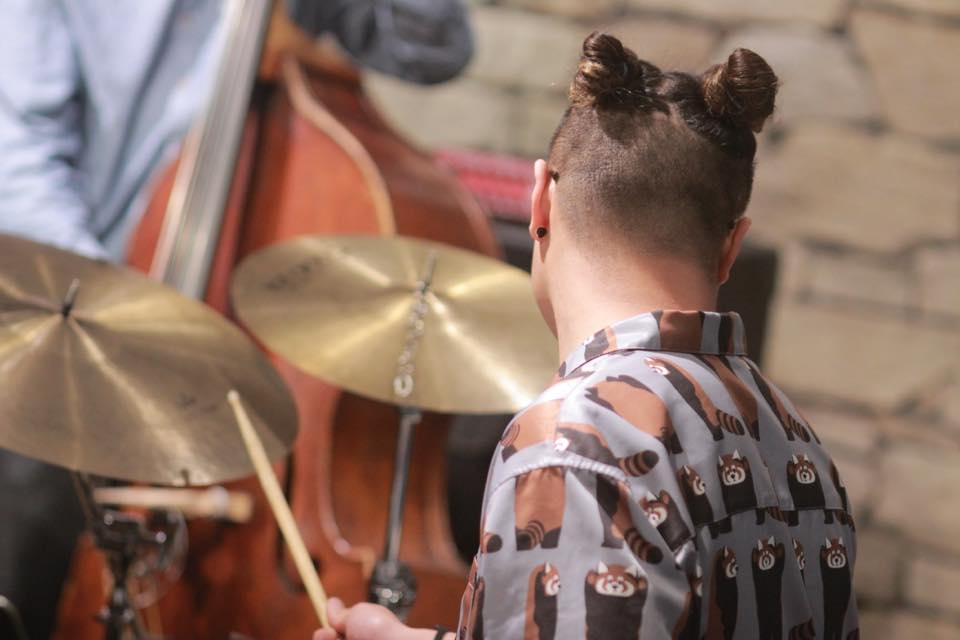 ▶2nd.セットの♪Benny’s Tune は、小田桐さんのドラムソロから演奏が始まりました。リムショット シンバル ドラム バスドラムと次々に音を放ち、速度を上げリズミカルに演奏が進みます。その後、小田桐さんのオリジナル曲とアレンジ曲の3曲が演奏されました。