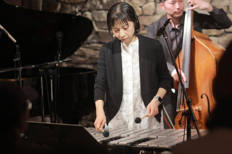 ▶ベースだけ男性で他の4人が女性、という黒一点(?)の5人編成時のユニット名《THE SEXTET》浅利史花(g) 大塚義将(b) 西川彩織(ds) 山田貴子(pf) 山本玲子(vib) さん。ヴィブラフォンとギターがフロントで、全体のサウンドは柔らかく気持ちのいい、華やかなステージでした。自分たちのオリジナル曲の間に、ジャンルを超えてお馴染みの有名な曲を挟んだステージングもなかなか良かったです。