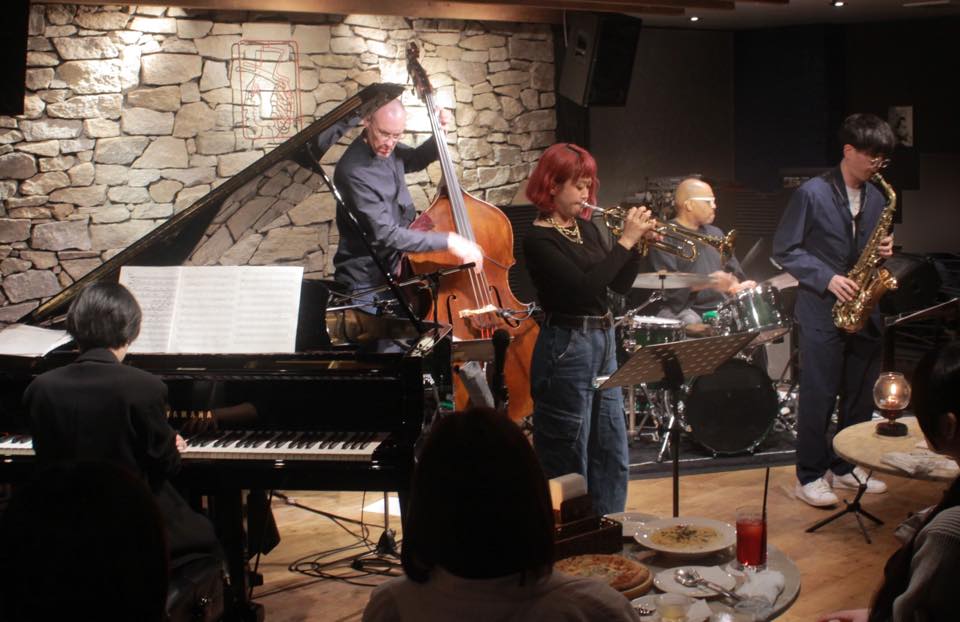 4/15(水)は《杉林茜リーダークィンテット》メンバー 杉林茜(pf) 市原ひかり(tp,vo) 河原畑拓巳(ts,as) パット・グリン(b) ジーン・ジャクソン(ds) さん