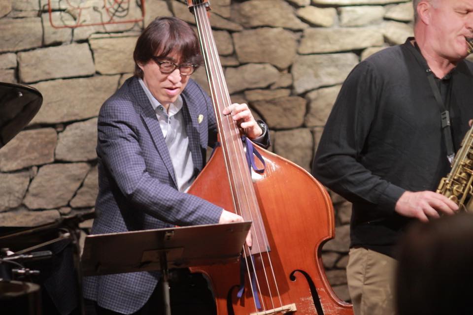 ▶青森の弘前城でいつもGWが見頃なのに、2週間以上早く桜が満開になったとか。汗ばむような暖かい週末金曜の昨夜は《ジム・バトラー リーダークァルテット》1年ぶりの出演でメンバーは今年はピアノが変わって エディ・メンデンホール(pf) 中村健吾(b) ジーン・ジャクソン(ds) さん。